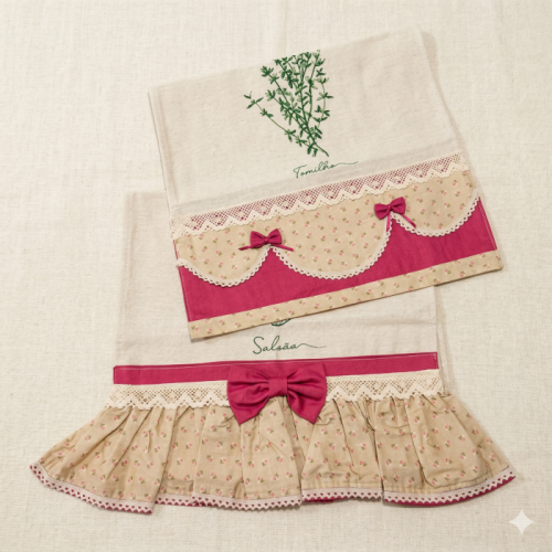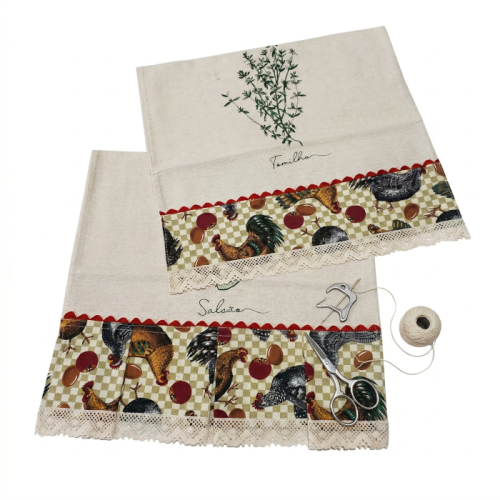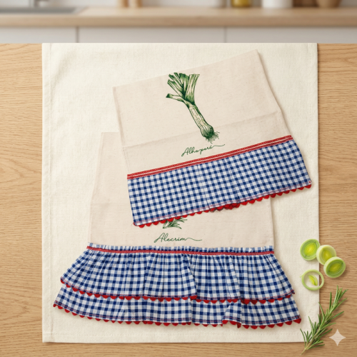 Adicione elegância e um toque artesanal à sua cozinha com este conjunto de panos de prato. Confeccionados em tecido de algodão macio e durável, cada pano apresenta detalhes em renda delicada e babado xadrez, combinando funcionalidade com estilo rústico e acolhedor. A estampa floral ou ilustrativa no centro adiciona personalidade, tornando o item não apenas útil, mas também decorativo.