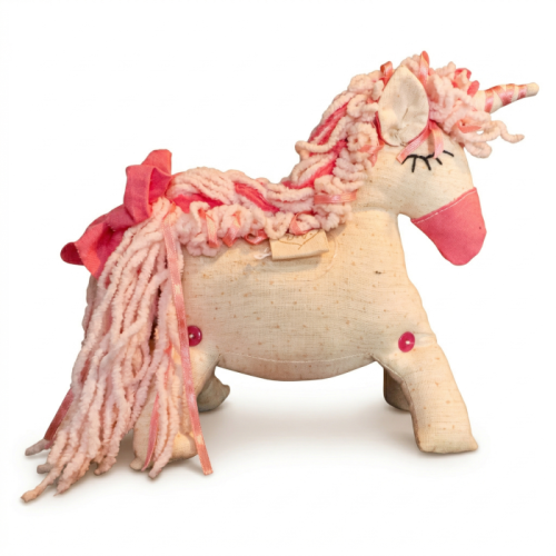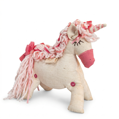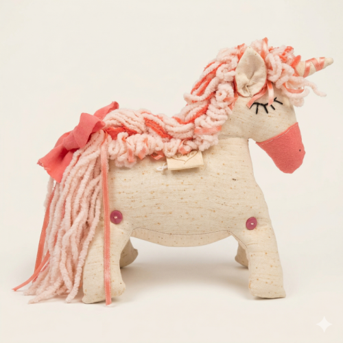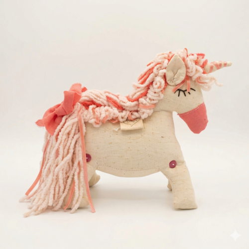 • Unicórnio de pano artesanal, feito à mão com acabamento cuidadoso.